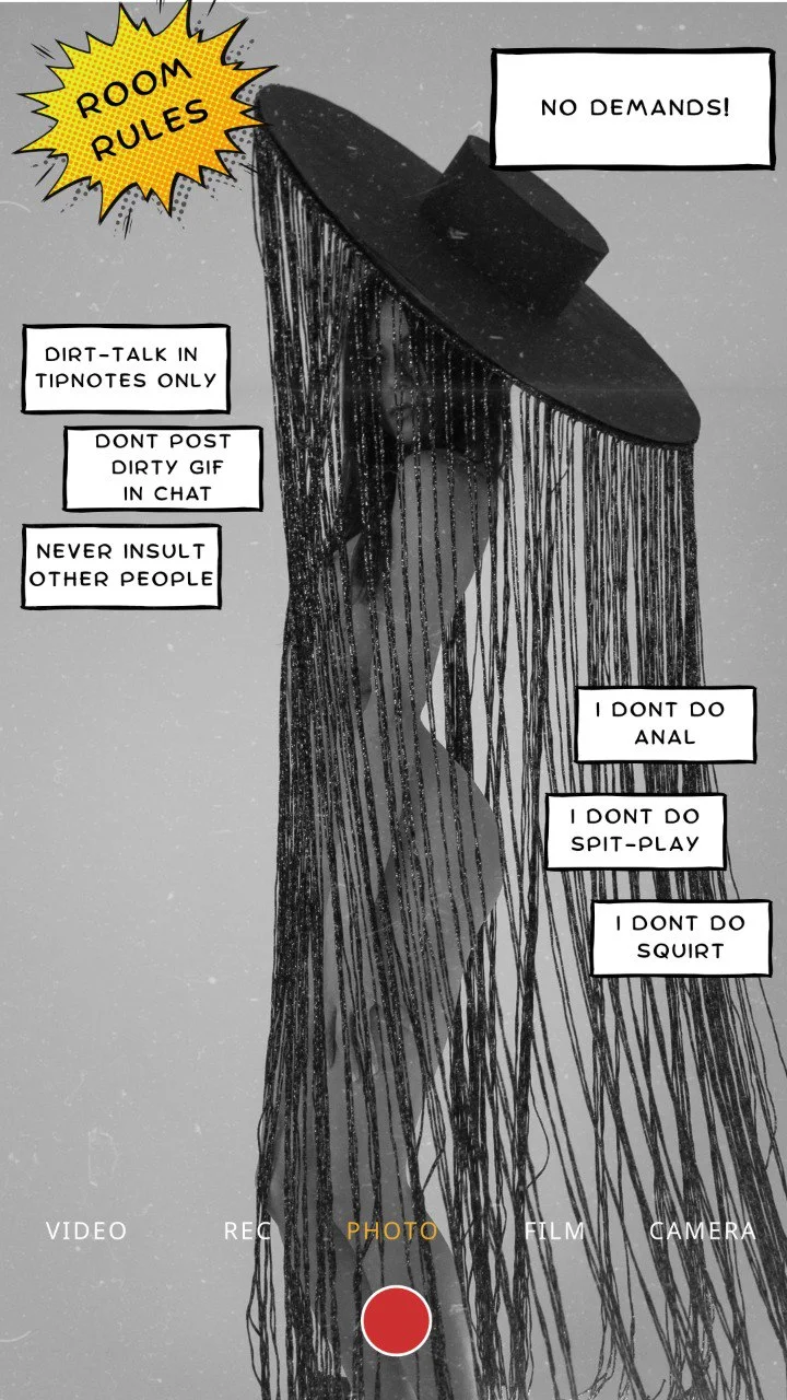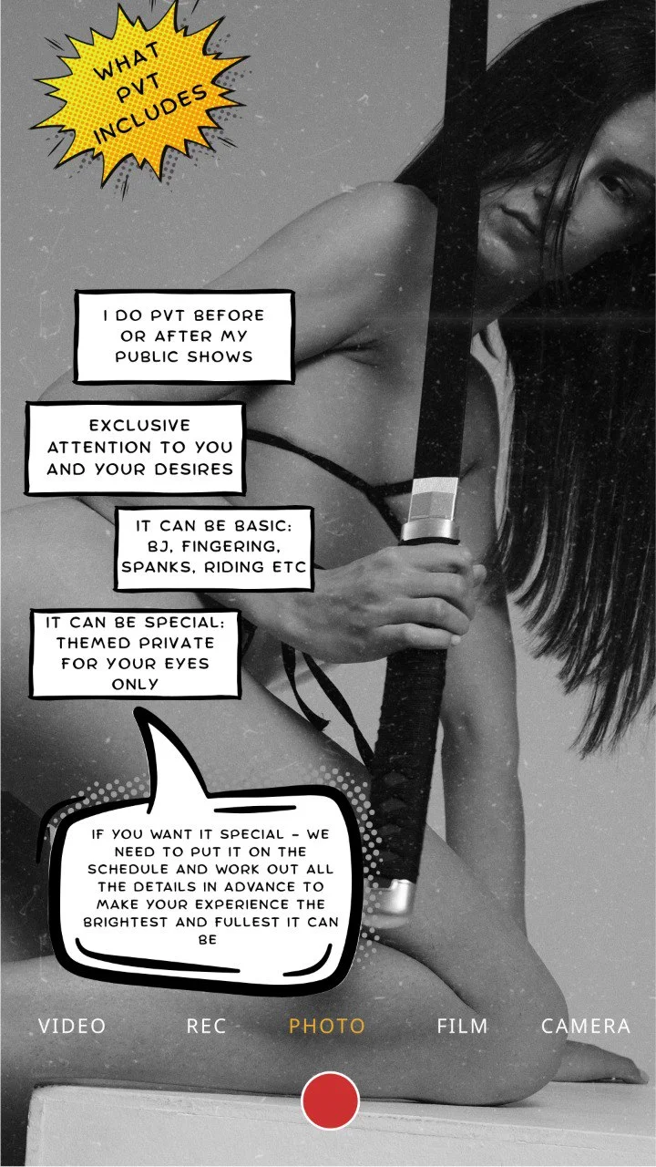 Ахеґао, Верблюжа лапка, Поза вершниці, Демонстрація геніталій, Фут-фетиш, Спанкінг, Еротичні танці, Олійне шоу, Оргазм, Нейлон, Глибоке горло, Мастурбація рукою, Мастурбація, Мастурбація пальцями, Мінет, Сісти на обличчя, Дилдо або вібратор, Догі-стайл, Підбори, Інструкція з мастурбування, Рольові ігри, Стриптиз, Задерта спідниця